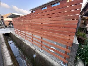 玄関側にも天然木の目隠しフェンスを設置しました。