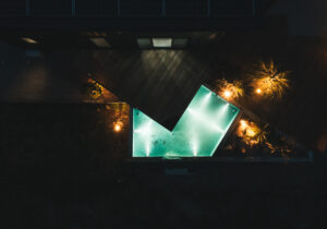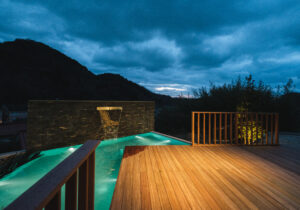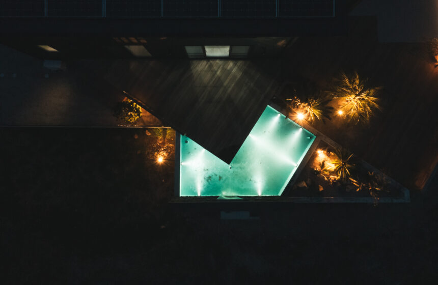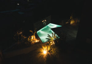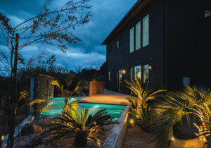 水盤内にはウォーターライトを埋め込み、昼とはまた違うラグジュアリーな雰囲気を演出