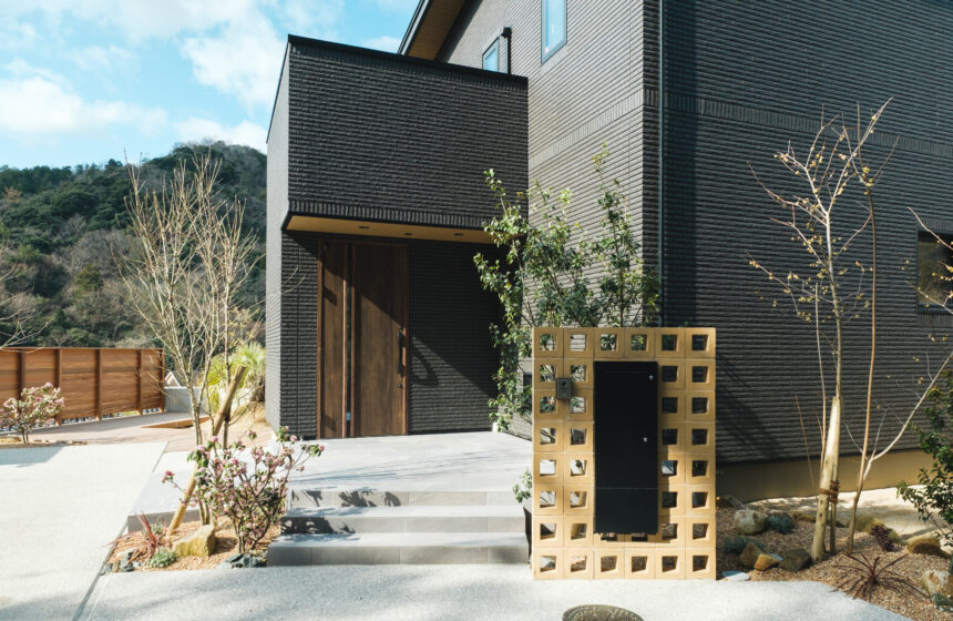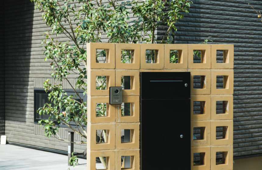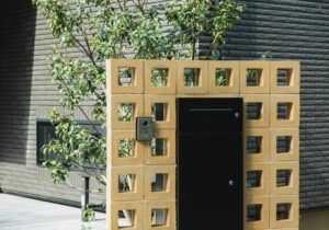 宅配ボックス:一条工務店オリジナル 門柱:オオムラ スクリーンブロック